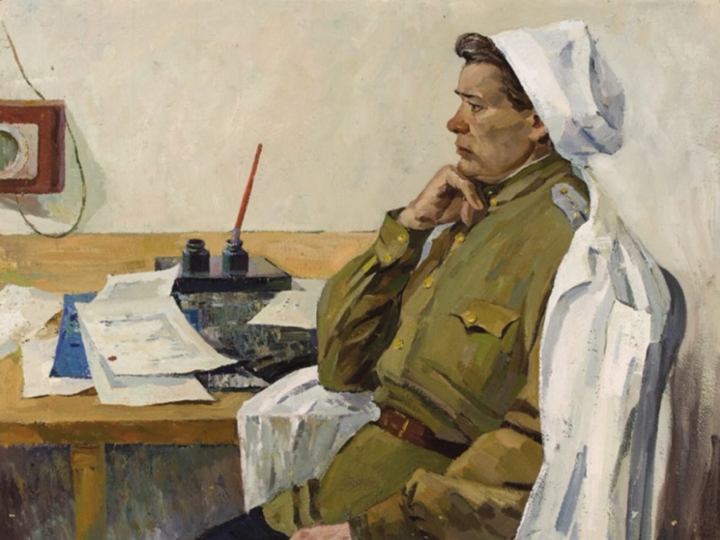 Ей раненых ещё тащить – под пулями, под стоны, грохот боя.